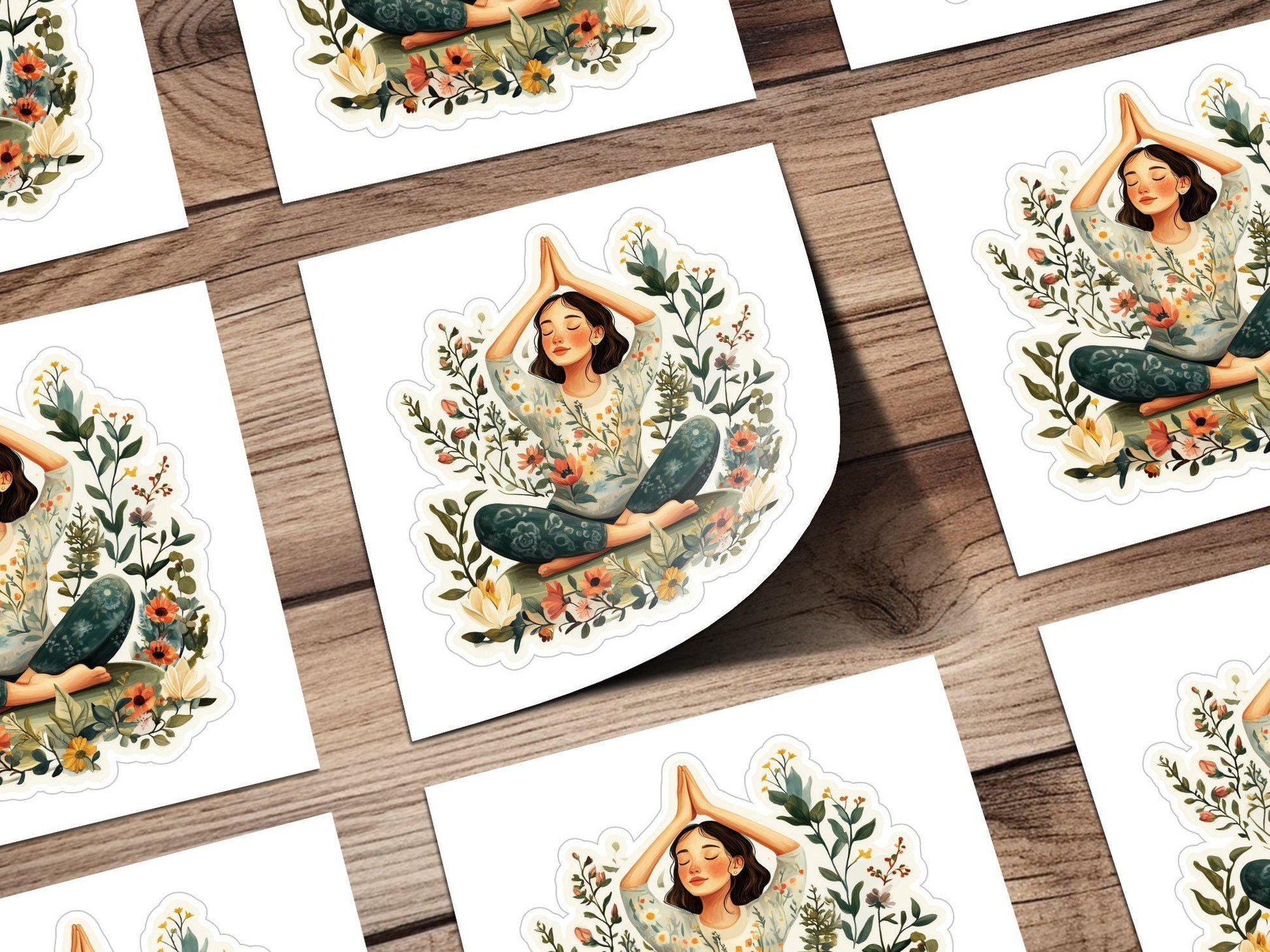 Yoga Meditation Sticker, Floral Design Art, Inspirational Quote Decal, Waterproof Decal for Laptop, Planner, Water Bottle, Yoga Gift